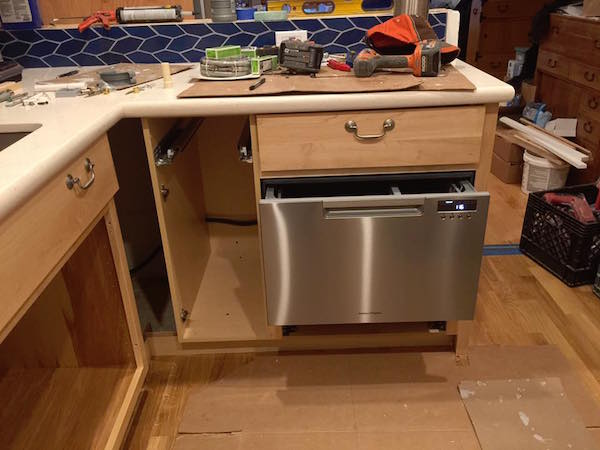 “One of the many questions I had prior to the construction was the timing: what was going to be done when? The photos below document the process day-by-day (days of actual work). Excluding the spice rack, the total build took just under six weeks. I was able to manage because I had access to my refrigerator, a microwave, and a toaster oven — all were moved into my dining area.